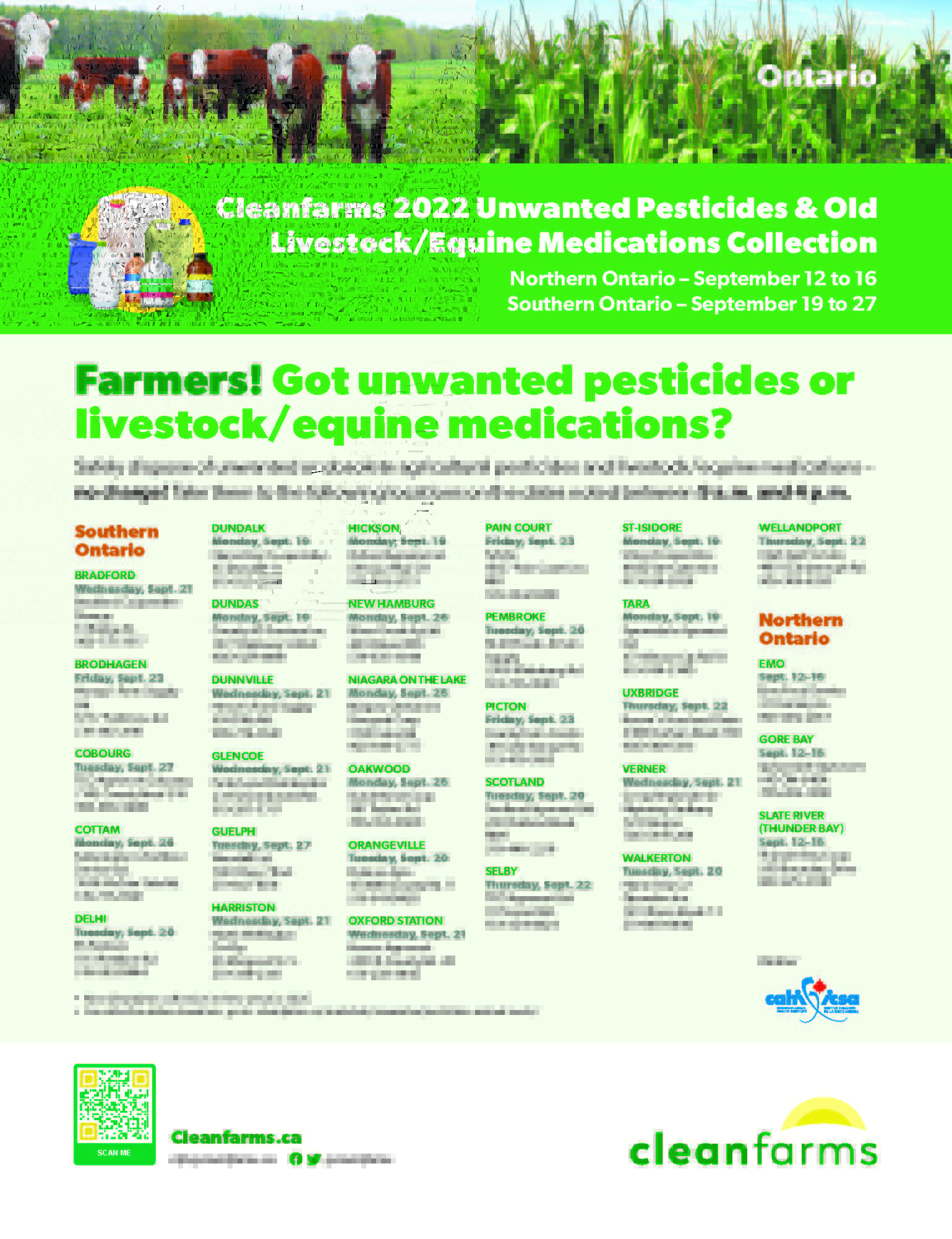Cleanfarms is offering free disposal of unwanted pesticides. Consider this option for remaining pesticides that will not be registered after 2022.