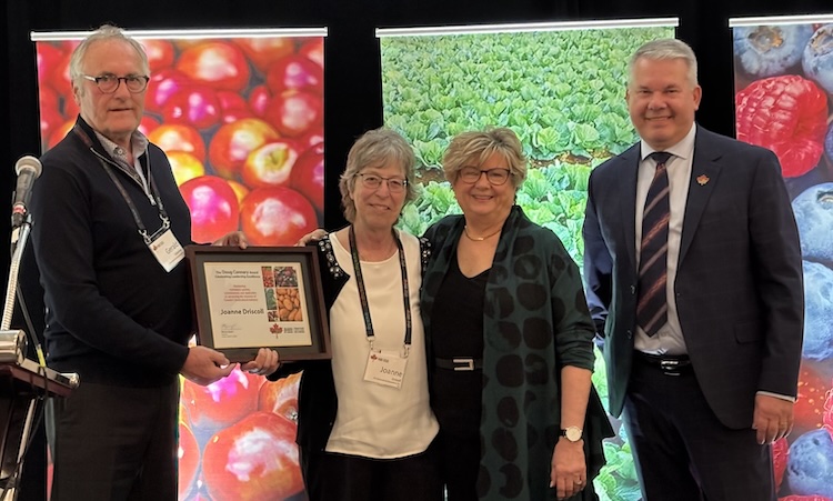 The Fruit and Vegetable Growers of Canada (FVGC) presented Joanne Driscoll, executive director, Prince Edward Island Horticultural Association, with the 2026 Doug Connery Award at its annual banquet in Ottawa.